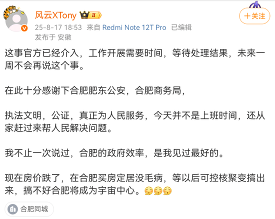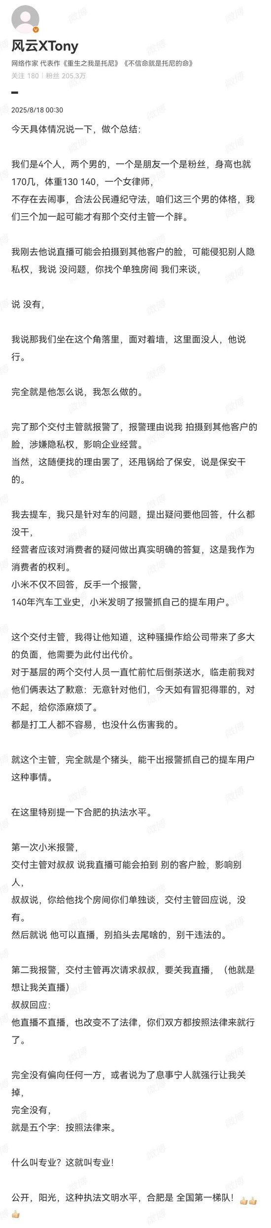 8月18日,“风云XTony”也发文对此次提车过程进行了总结。